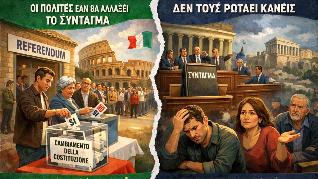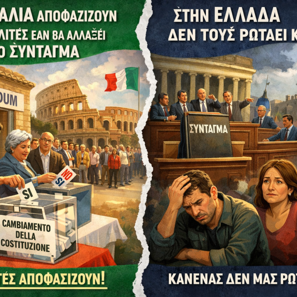 Πως να χαρακτηρίσουμε μια κυβέρνηση που αντιλαμβάνεται ως κίνδυνο τη συμμετοχή των πολιτών στη λήψη των αποφάσεων; Που “ετσιθελικά” δεν εφαρμόζει ψηφισμένη Συνταγματική διάταξη...